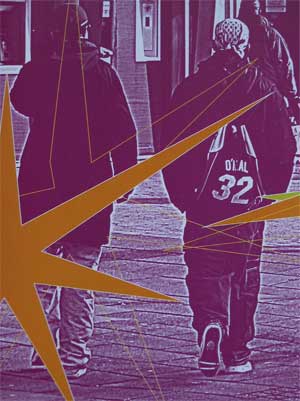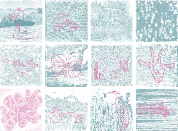 Tegelwand in Koffiehusisje. Zeefdruk op tegeltjes 10x10cm