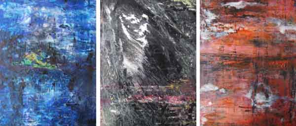 Abstracte 'huid' schilderijen, oppervlaktestructuren en kleurnuances door materiaal en gelaagdheid
